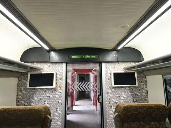 Are you new to the route? Train-18 has got it covered. The display system inside the train mentions the current station name, upcoming station name, time of arrival and the speed of the train. The display systems are fitted at each end of any coach.