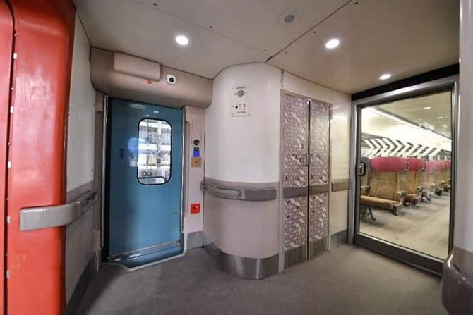 To help senior citizens, the train has a sliding footstep, which would open up, when the train reaches the station.