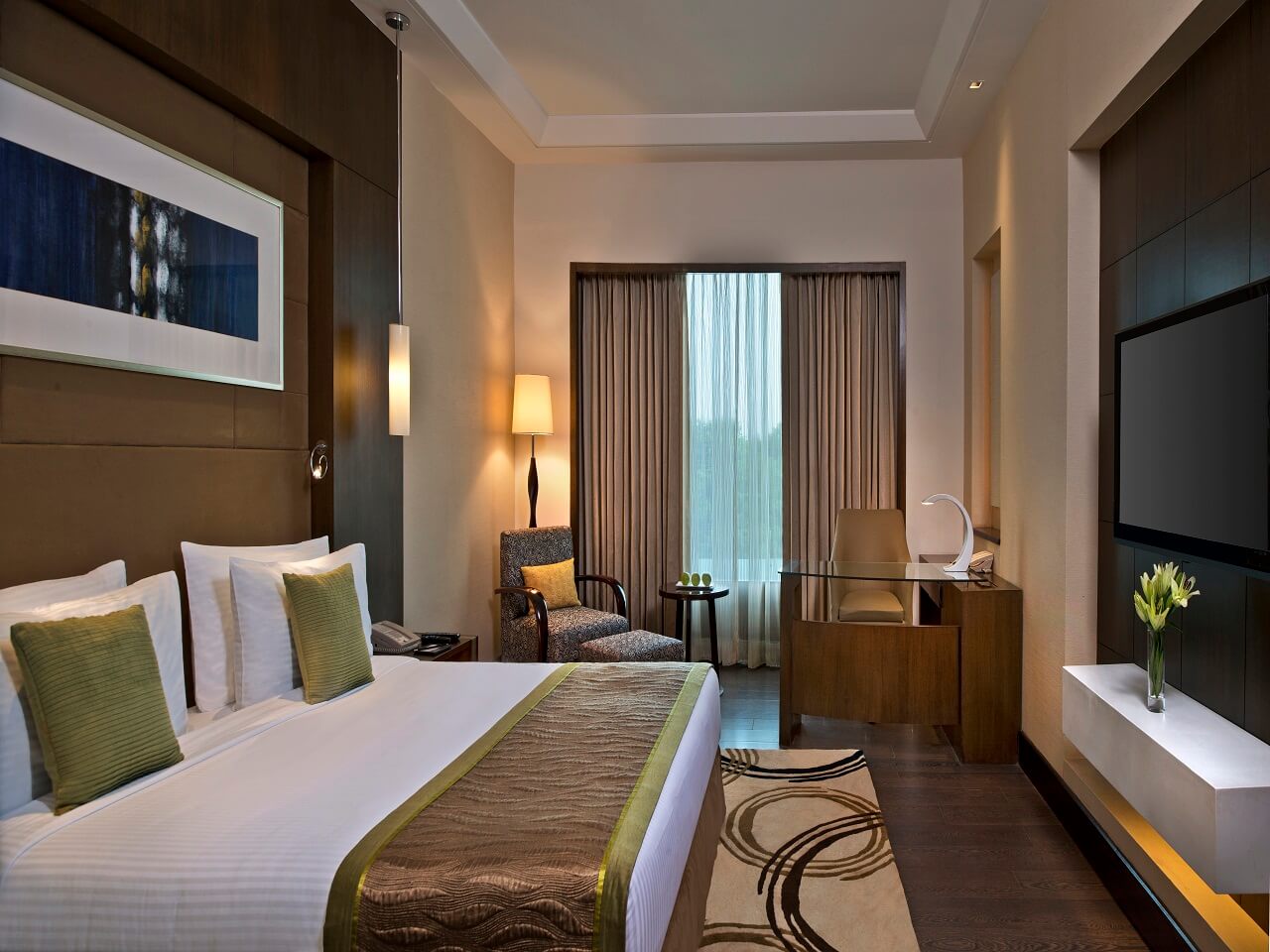 Having a tremendous benefit of its location, that is just a kilometre away from the Taj Mahal, Radisson Blue Agra is often booked for the mesmerizing views that it offers of this iconic monument, the privilege of getting an access to private lawns and getting the luxury of a sunken bathtub.